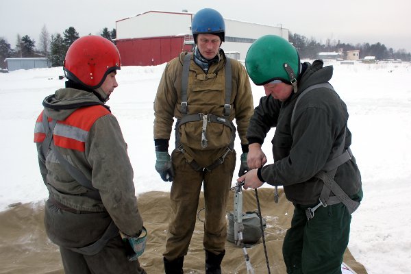 Сегодня пожарные десантники проводили спуск с вертолета. Спуск осуществляется по тросам с высоты от 10 до 40 метров. Примерно в таких условиях им приходится работать непосредственно при тушении лесных пожаров. Вертолет может приблизиться к земле настолько, насколько позволяют кроны деревьев. Если есть возможность, оборудование для тушения лесных пожаров подвозят в леса на машинах, если дорог нет – оборудование также спускается с вертолета.