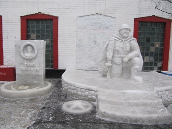 Среди работ ледовый памятник Тане Савичевой, которая будучи еще ребенком вела дневник, записывая даты кончины своих близких; полуторки, машины на которых в блокадный Ленинград через Ладожского озеро привозили провизию; обелиски погибшим солдатам и жителям блокадного города.