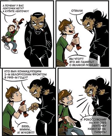 Вымораживает, когда видишь засаленные ленточки на машинах и шнурках. Патриотическим воспитанием и не пахнет.