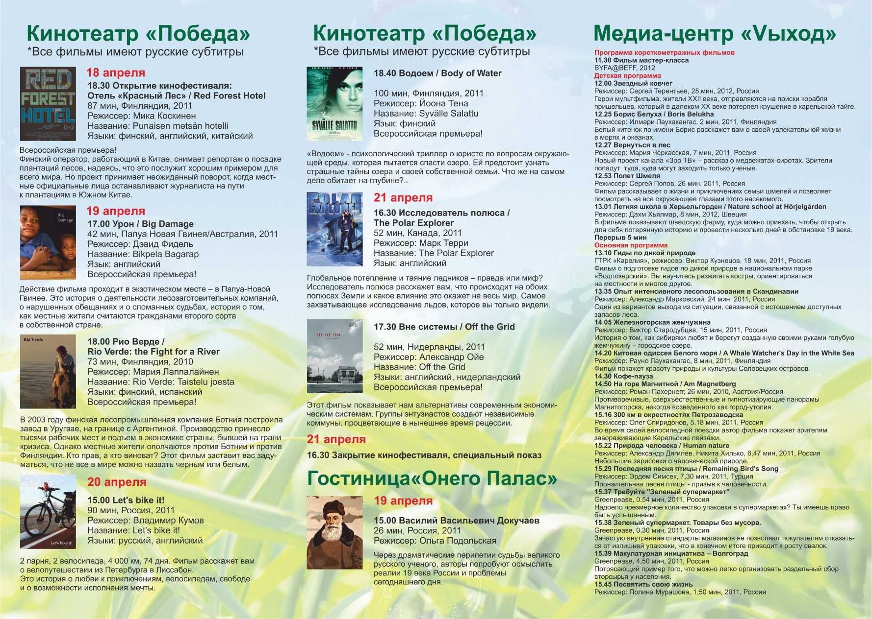 В конце апреля в Петрозаводске пройдет традиционный фестиваль экологических фильмов