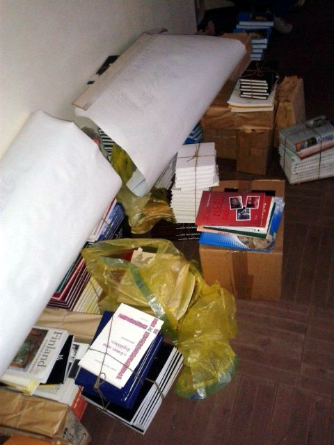 дипломные работы студентов, посвященные карельскому и финскому языкам. Все это лежит в мусорных пакетах в коридоре.