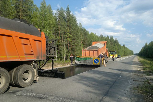Начаты работы по поверхностной обработке дорожного покрытия в Медвежьегорском районе с 570км по 600 км, из запланированных 30 км сделано 5 км. Заключен контракт на содержание трассы, для чего подрядчики приобрели и установили асфальтобетонный завод.
