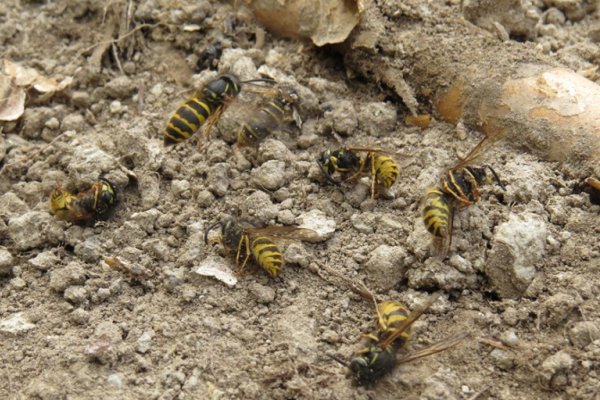 Выжившие осы продолжают летать, но недалеко. Многие вскоре погибают прямо на руинах. Оставшиеся продолжают обследовать стенки камеры, заползают в щели и отнорки. Они перестают защищать и защищаться. Причём для одной семьи злоключения на этом не закончились - до них из-под земли добрался крот и доел насекомых, оставив после себя холмики грунта.