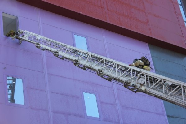 Пожарной лестницы только до 4-го этажа хватило? Небось всю ночь не спали в ожидании внезапной учебной тревоги.