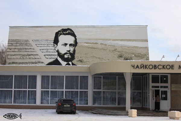 Легендарный стрит-арт художник из Перми раскрашивает здание кинотеатра «Калевала»