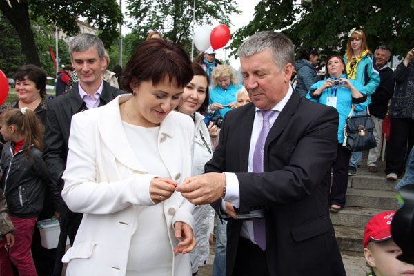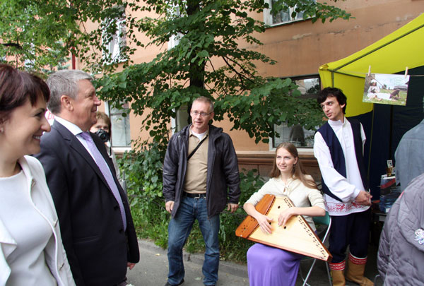 На выставке-ярмарке «Город-мастеров», где горожане и предприятия знакомят гостей с новыми сувенирами и народными промыслами, Александр Худилайнен заинтересовался одной из новинок праздника. В палатке «Монетной кузницы» каждый желающий мог собственными руками изготовить сувенирную монету в память о Дне города. Глава Карелии с одного удара молотом отчеканил монету с изображением символа Петрозаводска.