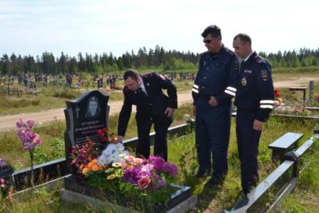 В Кондопоге в канун 79-ой годовщины образования Государственной инспекции безопасности дорожного движения школьники посетили бывшего начальника РОВД Кондопожского района Карелии Бориса Васильевича Мазилкина, который 25 лет своей жизни посвятил служению людям, профессии и призванию. На встрече юные инспекторы узнали о жизненном пути Бориса Васильевича, получили советы и наставления в области безопасности дорожного движения, послушали стихи, написанные ветераном. Не так радостно, но и не менее важно начался День ГИБДД в Лахденпохья. У автоиспекторов церемония началась с почтения памяти погибшего в Чеченской республике инспектора Дмитрия Кузнецова. Трагедия произошла 4 мая 2008 года во время обстрела колонны милицейских машин. Сотрудники возложили цветы на могилу погибшего, навестили родителей Дмитрия, поздравили их с праздником и поблагодарили за воспитание отважного и честного сына.