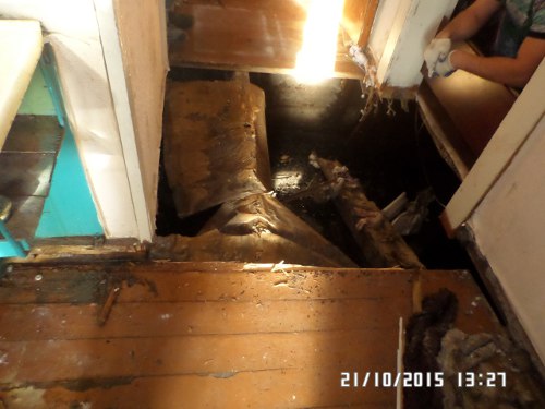 - Даже на обычную просьбу приехать зафиксировать аварийную ситуацию, никого нет. В местной администрации разводят руками, мол, что мы можем сделать, жилого фонда нет, - рассказала жительница Беломорска, мать троих детей. - Венцы под полом прогнили и могут рухнуть, полы могут и в комнатах - ни сегодня, так завтра. Под полом находится самое интересное – это вода и фекалии, которые выливаются из квартир.