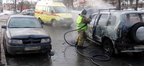 - Загорелась "Нива", после чего взорвался бензобак и огонь перебросился на припаркованный рядом легковой автомобиль, - сообщают очевидцы.
