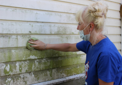 Дом Галины Андреевны, обшитый белым сайдингом, со временем стал темным. Работники Пенсионного фонда отмыли фасад, удалили грязный налет.