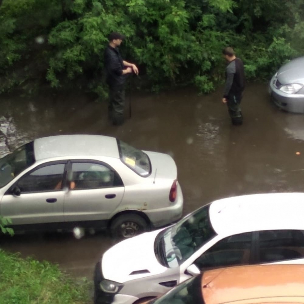 «В 4.25 утра спасала свою машину от потопа. Всего-то надо крышку люка открыть, приехали ребята в сапогах, спасли нас)). Но это только около 9.00. Приехал мусоровоз, не смогли забрать мусор, да и людям не подойти, чтобы выбросить мусор. А детишек в садик родители вели по кустам вдоль забора. Разве это нормально?» - рассказала Ирина.