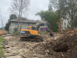 Здесь рядом со зданием Почты России идет реновация деревянных домов.