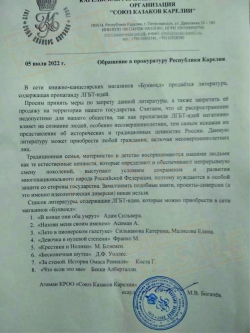 с просьбой принять меры по факту реализации в сети книжных магазинов «Буквоед» литературы, содержащей пропаганду ЛГБТ-идей.