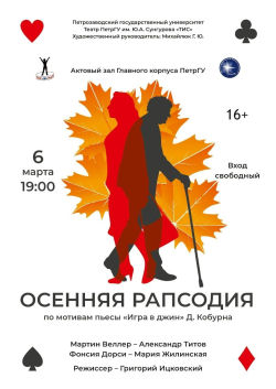 Народный театр ПетрГУ "ТИС" приглашает всех любителей театра на спектакль "Осенняя рапсодия" по мотивам пьесы Дональда Ли Кобурна "Игра в джин".